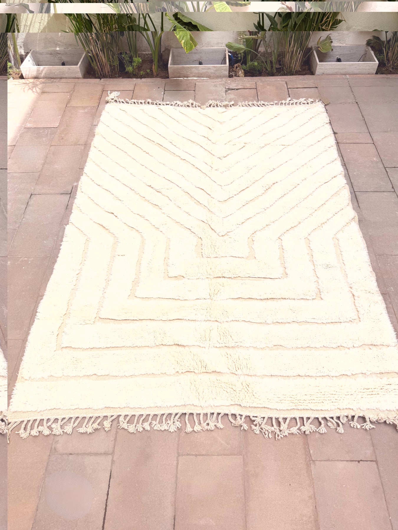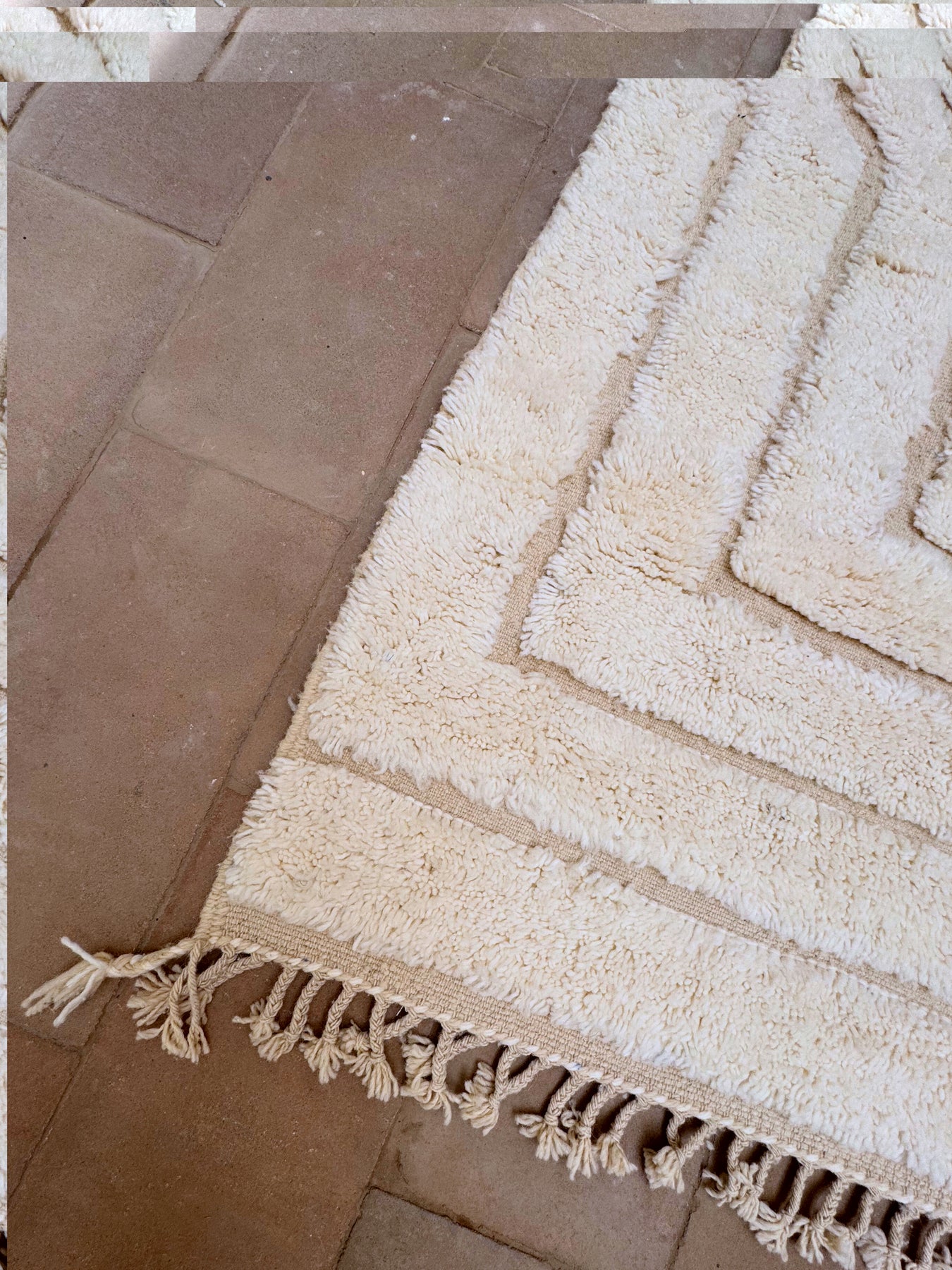 Le tissé à la main Le tapis marocain constitue une touche de décoration unique pour votre salle à manger ou sous votre table basse pour un style bohème moderne parfait. Doux, durable et neutre, ce tapis Beni Ourain apporte une touche luxueuse à votre intérieur.