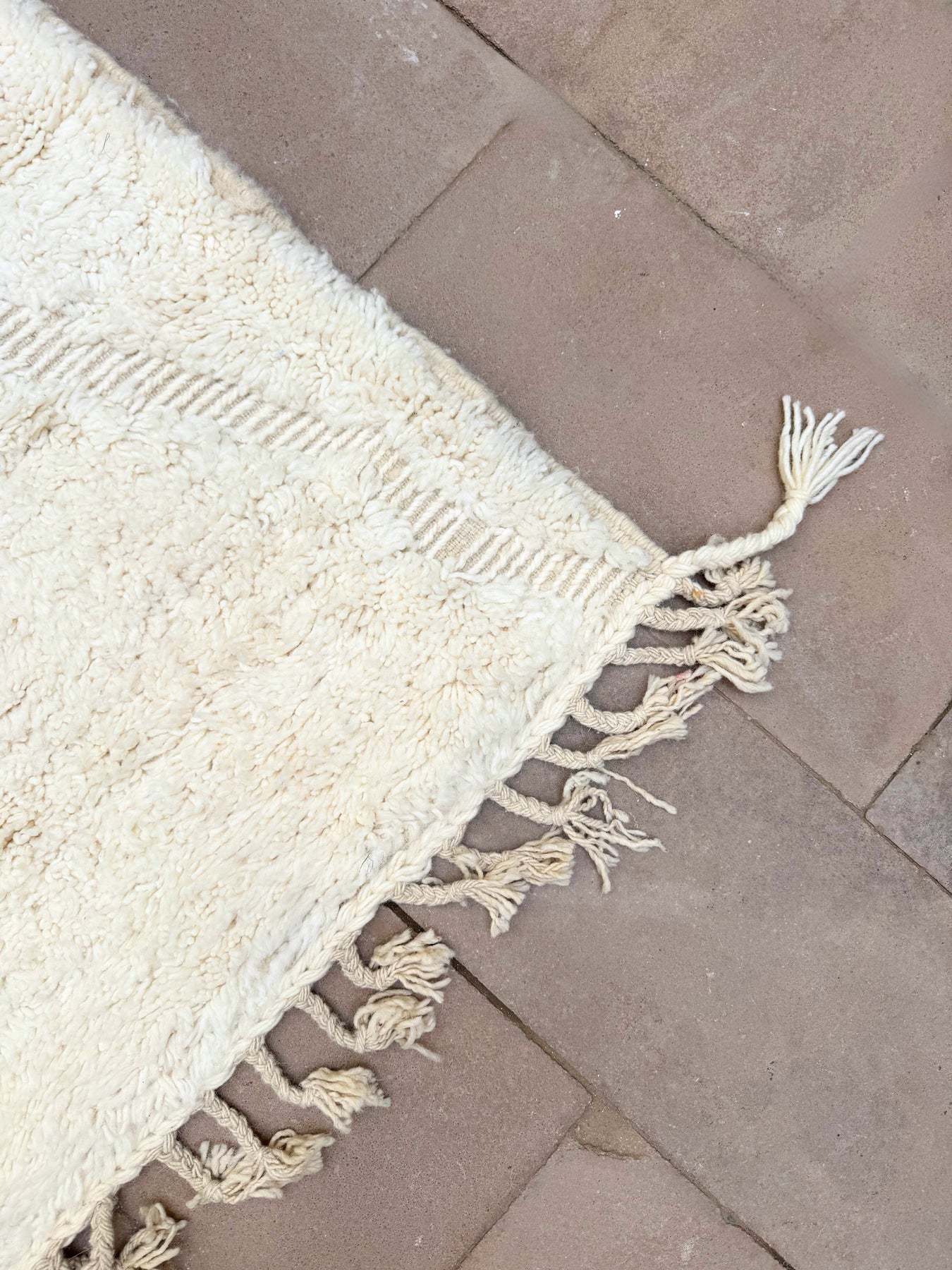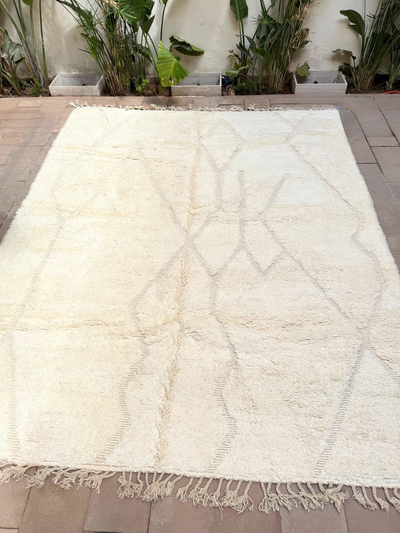 Le tissé à la main Le tapis marocain constitue une touche de décoration unique pour votre salle à manger ou sous votre table basse pour un style bohème moderne parfait. Doux, durable et neutre, ce tapis Beni Ourain apporte une touche luxueuse à votre intérieur.